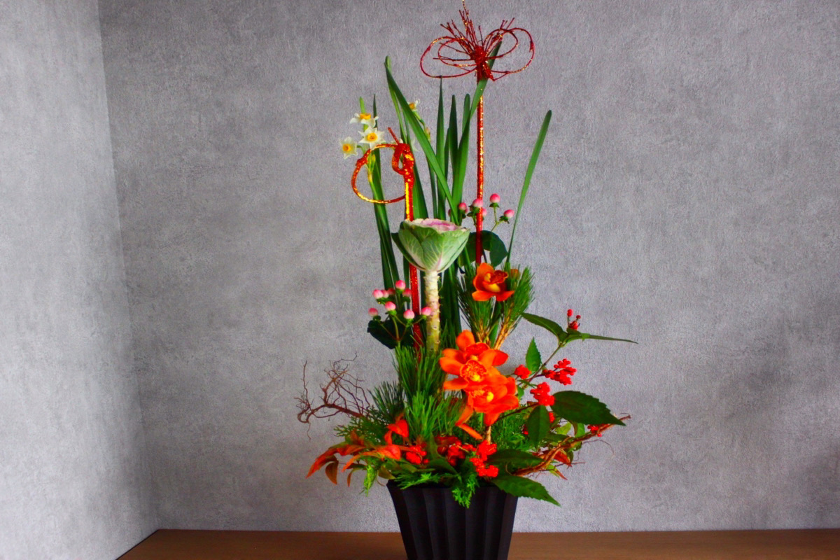 和の庭園風お正月フラワーアレンジメントをつくります。