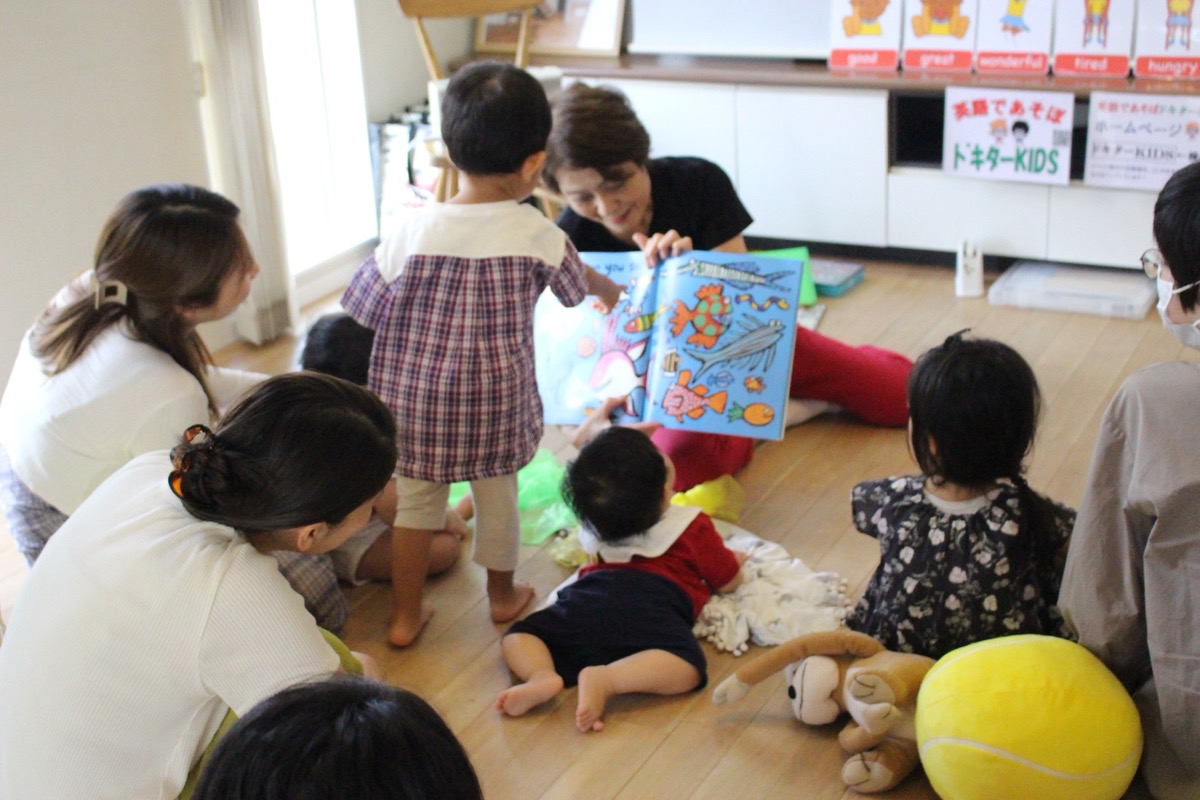 Babyちゃんも生の声の英語絵本読み聞かせに興味津々♪